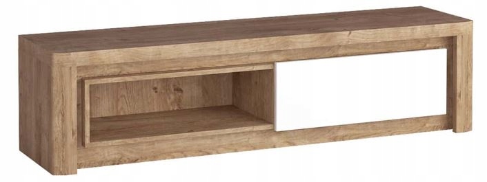 Szafka RTV GLOSS to idealne rozwiązanie dla osób szukających eleganckiego i funkcjonalnego mebla pod telewizor. Wyposażona w LED podświetlenie w cenie, nadaje wnętrzu nowoczesny wygląd i wyjątkowy klimat. Przestronna klapa oraz dodatkowe półki (opcja) zapewniają praktyczne miejsce na przechowywanie urządzeń i akcesoriów. Białe, połyskujące fronty harmonizują z korpusem w odcieniu dębu ribbeck, tworząc stylową i spójną aranżację w salonie.