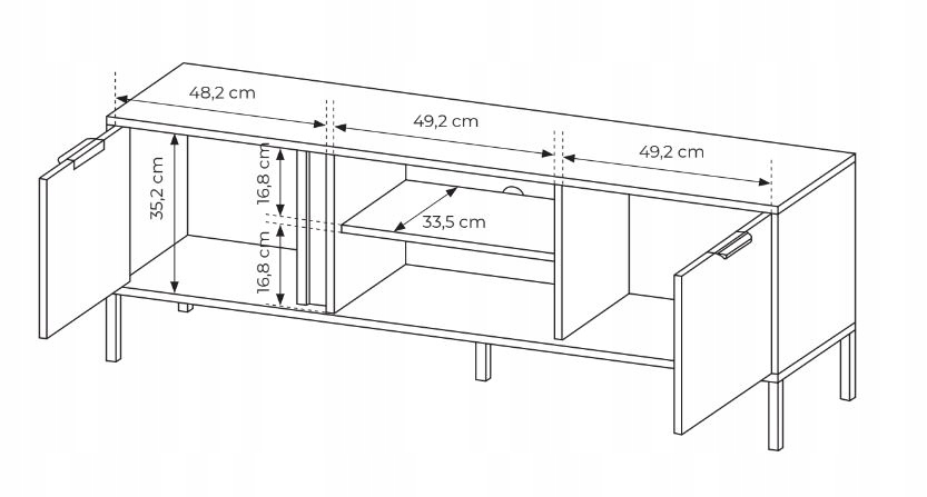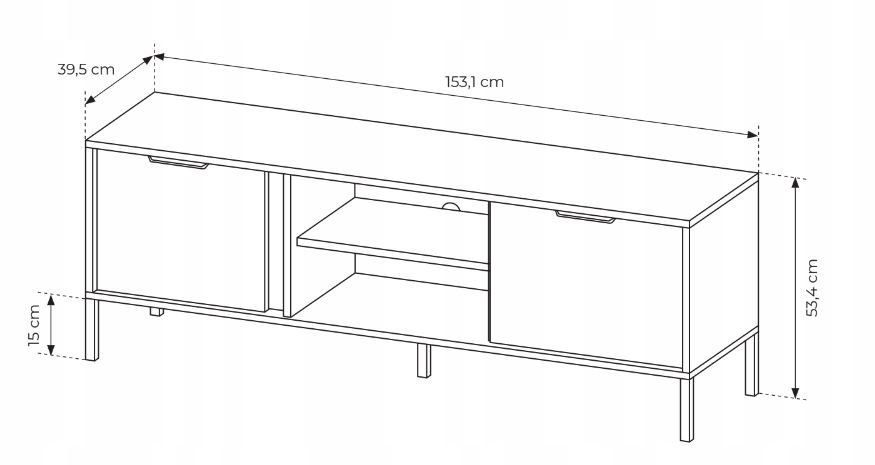 Szafka wyposażona jest w pojemne komory z drzwiczkami oraz półki, które umożliwiają łatwy dostęp do przechowywanych przedmiotów, a metalowe uchwyty w złotym kolorze podkreślają nowoczesny styl. Wykonana z wysokiej jakości płyty laminowanej odpornej na wilgoć i wysoką temperaturę, szafka RTV LARS jest zarówno estetyczna, jak i trwała – doskonale wpisuje się w każdy industrialny i minimalistyczny wystrój wnętrz.