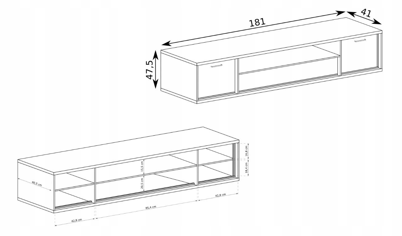 Szafka RTV MILAN o szerokości 181 cm to stylowy mebel do salonu, idealnie łączący nowoczesny styl industrialny z ciepłym, naturalnym kolorem hikory. Front zdobi drewniana ozdobna deska, dodając elegancji i unikalnego charakteru. Czarne, metalowe uchwyty podkreślają nowoczesny wygląd i są praktycznym elementem użytkowym.