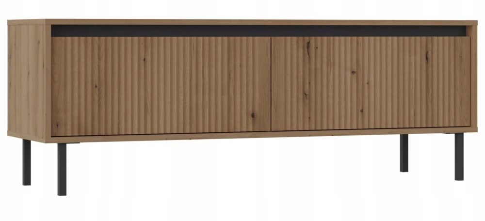 Ta szafka RTV z dwiema szufladami to elegancki i funkcjonalny element kolekcji Osaka, który doskonale sprawdzi się w każdym salonie. Dwie przestronne szuflady zapewniają wystarczającą przestrzeń do przechowywania akcesoriów, kabli czy dokumentów, pozwalając na utrzymanie porządku wokół strefy telewizyjnej. Wykonana w subtelnym odcieniu beżu piaskowego i podparta na solidnych, czarnych metalowych nogach, szafka idealnie wpisuje się w naturalne i nowoczesne aranżacje.