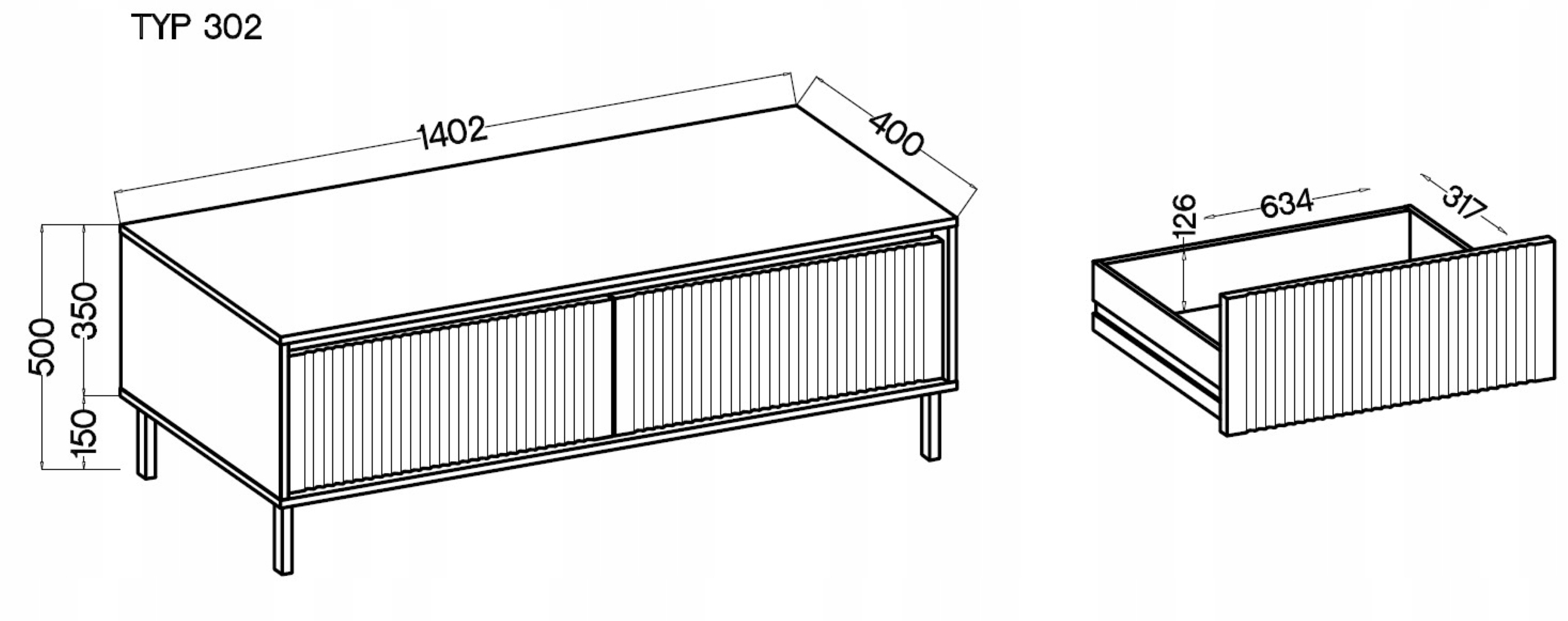 Stolik RTV Osaka cechuje się frezowanymi frontami, które dodają meblowi elegancji i głębi, idealnie komponując się z innymi elementami kolekcji. Wygodne otwieranie szuflad nachwytem oraz prowadnice kulkowe sprawiają, że szuflady działają płynnie i są łatwe w użytkowaniu. Zabezpieczone obrzeżem ABS krawędzie gwarantują trwałość i odporność na codzienne użytkowanie, co dodatkowo podkreśla wysoką jakość wykonania.