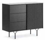 Artisan Czarny Witryna Niska Z Lamelami Szkło to elegancki element, który wprowadza nowoczesny styl do Twojego wnętrza. Wykonana w odcieniu czarnym z akcentami dębu artisan, ta witryna doskonale łączy funkcjonalność z estetyką, oferując atrakcyjną przestrzeń do przechowywania.
