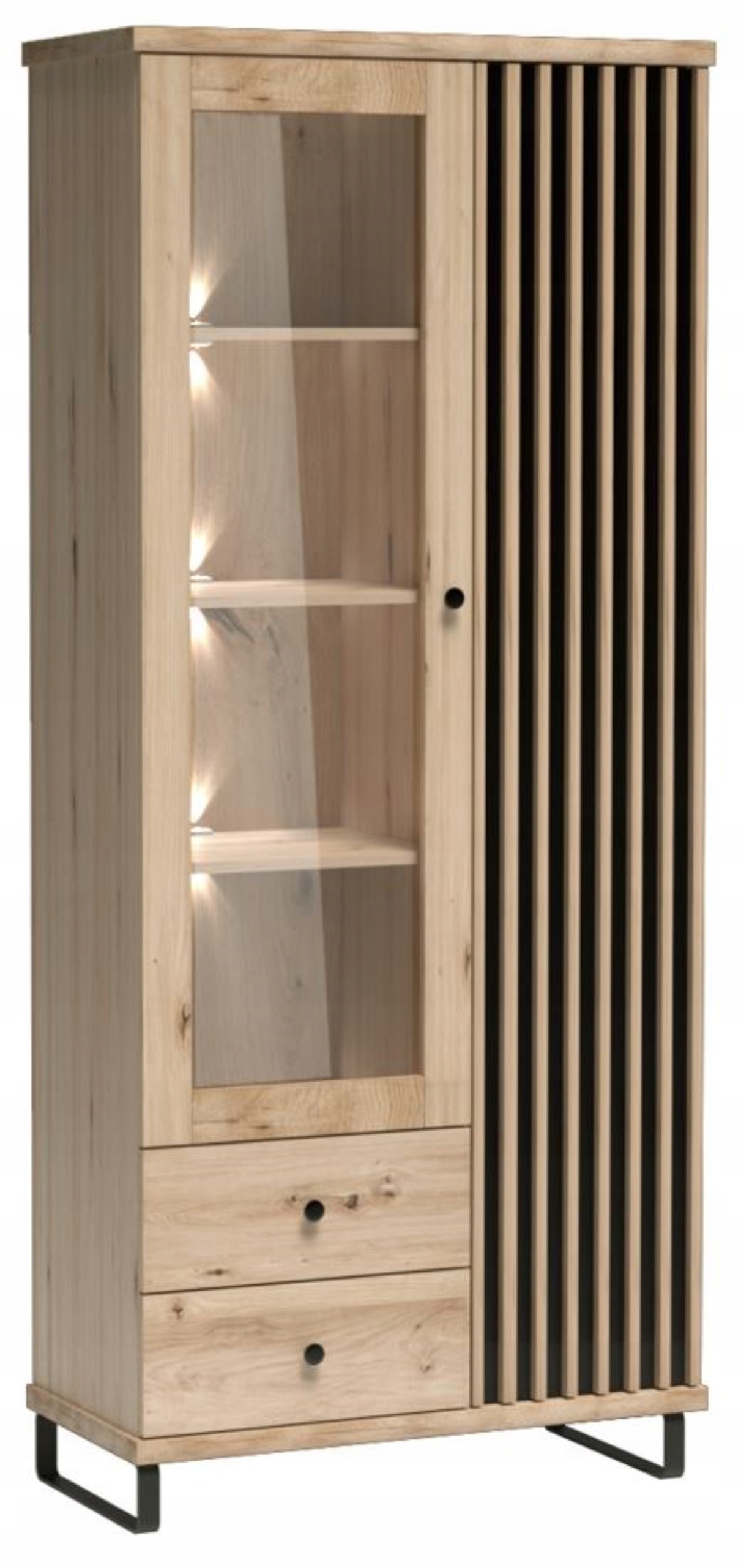 Artisan Czarny Witryna Wysoka Z Lamelami Szkło to idealne połączenie elegancji i nowoczesności, które doda wyjątkowego charakteru Twojemu wnętrzu. Została stworzona z myślą o funkcjonalności oraz estetyce, dzięki czemu doskonale wpisuje się w aktualne trendy aranżacyjne.