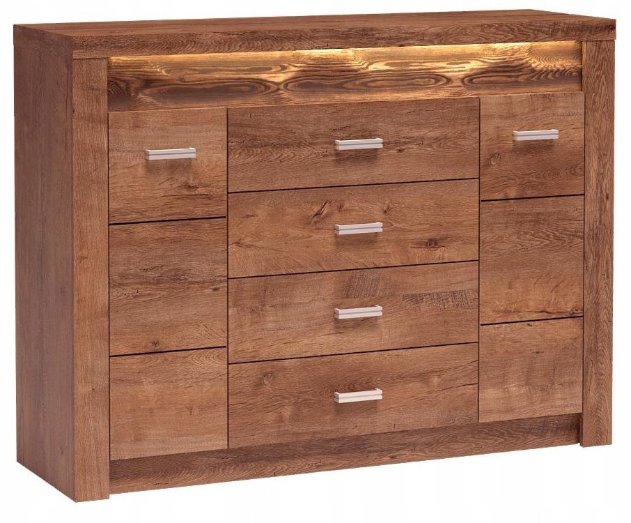 Łóżko CAMPA to połączenie elegancji, funkcjonalności i komfortu, które nada Twojej sypialni wyjątkowy urok. Tapicerowane panele zagłówka w kolorze czarnym oraz rama w odcieniu dąb artisan podkreślają naturalny styl i przytulność, tworząc harmonijną przestrzeń do wypoczynku.