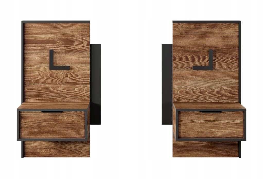 Meble z kolekcji MILTON wyróżniają się solidnym wykonaniem z wysokiej jakości płyty laminowanej, odpornej na uszkodzenia i działanie wilgoci. Metalowe, czarne uchwyty oraz nóżki dodają zestawowi elegancji i industrialnego charakteru, idealnie komponując się z nowoczesnym stylem sypialni. Dodatkowe obrzeża ABS dbają o trwałość i estetykę, chroniąc meble przed uszkodzeniami.
