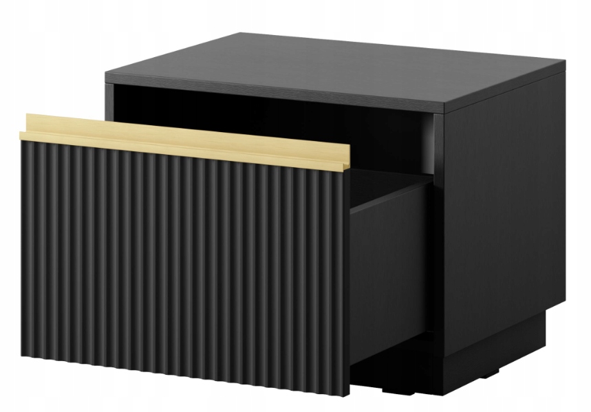 Kolekcja ROYAL to propozycja dla osób, które szukają mebli łączących nowoczesny minimalizm z ponadczasowym stylem i subtelnym akcentem dekoracyjnym. Charakterystyczne, pionowo ryflowane fronty osadzone w prostych korpusach tworzą spójną i wyrazistą formę, która doskonale prezentuje się zarówno w salonie, jak i w jadalni czy sypialni. Całość wieńczy delikatny złoty detal w postaci poziomej listwy, który dodaje meblom klasy i elegancji bez przesadnej dekoracyjności.