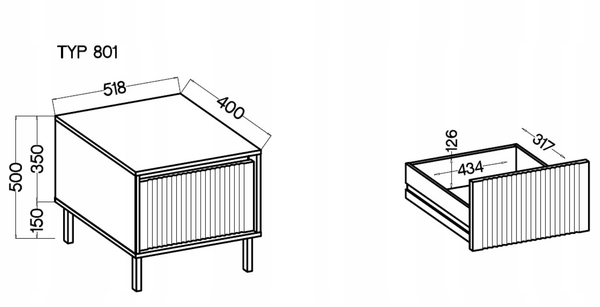Pojedyncza szuflada oferuje wygodne miejsce na drobne przedmioty, które chcesz mieć zawsze pod ręką, a prowadnice kulkowe zapewniają płynność otwierania i zamykania. Konstrukcja wzbogacona jest o metalowe nóżki o wysokości 15 cm, co ułatwia utrzymanie czystości, oraz ABS-owe obrzeża, które zwiększają odporność na codzienne użytkowanie.
