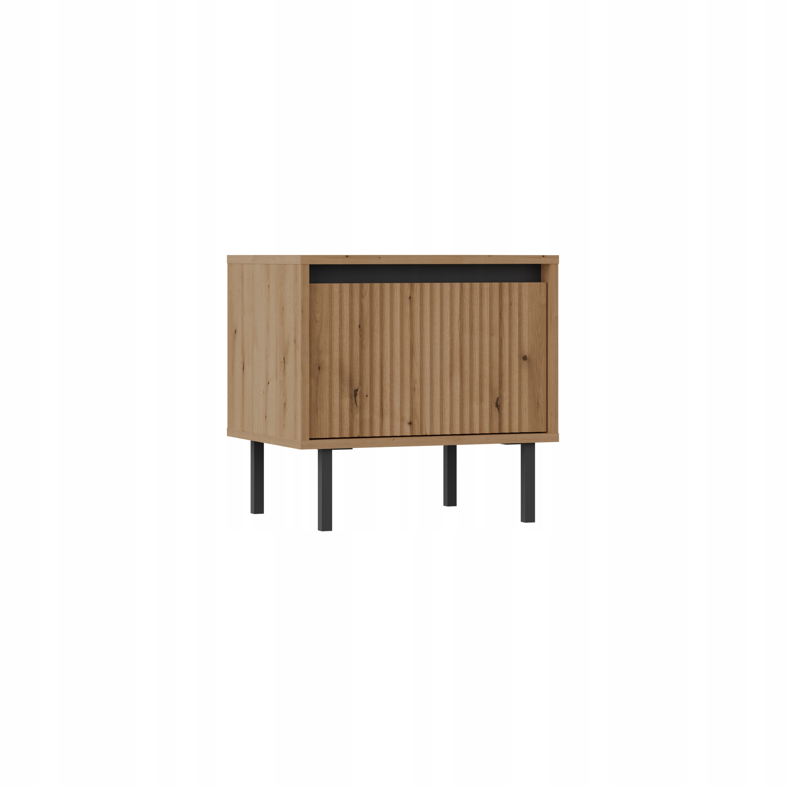 Szafka nocna Osaka to kwintesencja stylu inspirowanego japońską estetyką, wprowadzająca do sypialni harmonijny akcent minimalizmu. Wykonana z trwałej płyty laminowanej w kolorze dębu coast evoke, wyróżnia się starannie frezowanym frontem oraz czarnymi metalowymi nóżkami, które nadają jej nowoczesny charakter i wizualną lekkość.