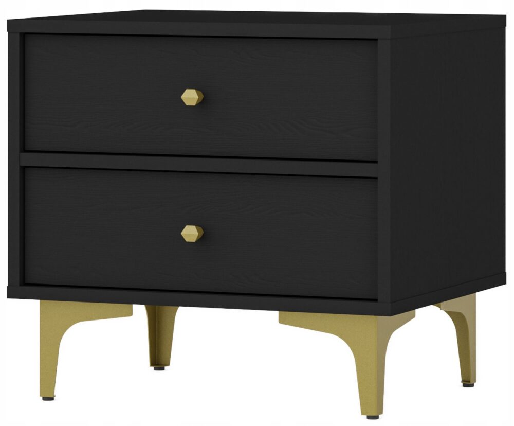 Elementy takie jak metalowe, złote nóżki i uchwyty podkreślają nowoczesny charakter szafki, wprowadzając odrobinę luksusu. Złote detale dodają wyrafinowania, a wysoka jakość materiałów – od struktury drewna na frontach po metalowe akcenty – gwarantuje trwałość i komfort codziennego użytkowania. Szafka nocna AVILA nie tylko wzbogaca wystrój sypialni, ale także staje się jej funkcjonalnym elementem, idealnie komponując się z resztą kolekcji.