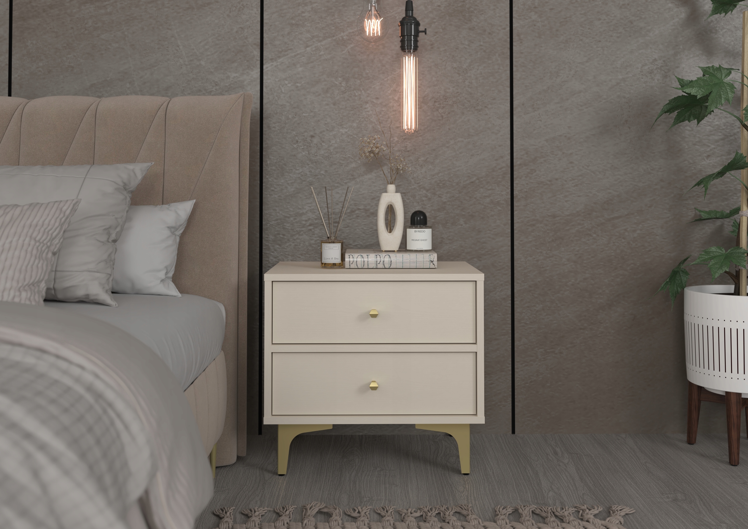 Szafka nocna z kolekcji AVILA łączy w sobie nowoczesny design z funkcjonalnością, tworząc idealne rozwiązanie do każdej sypialni. Wyposażona w dwie pojemne szuflady, ten stolik nocny zapewnia mnóstwo miejsca na przechowywanie niezbędnych przedmiotów, utrzymując przestrzeń wokół łóżka zawsze uporządkowaną. Nakastlik AVILA wykonany jest w eleganckim kolorze beżu piaskowego, który nadaje wnętrzu ciepła i harmonii, a dodatkowo współgra z różnymi stylami aranżacji.