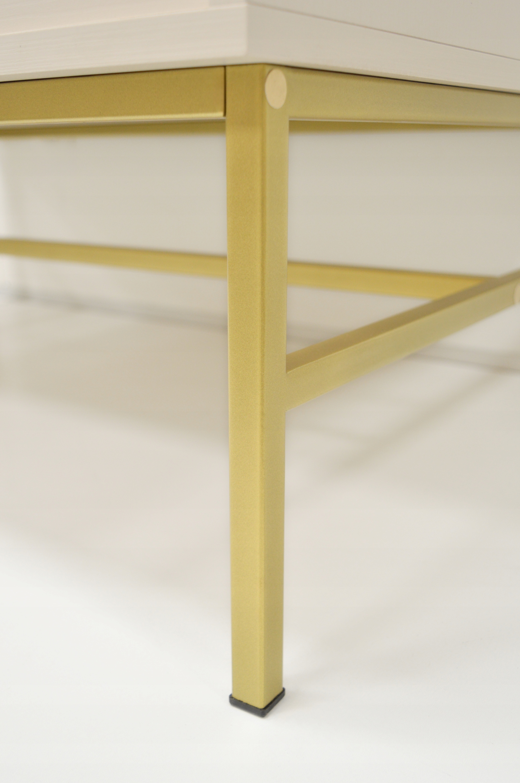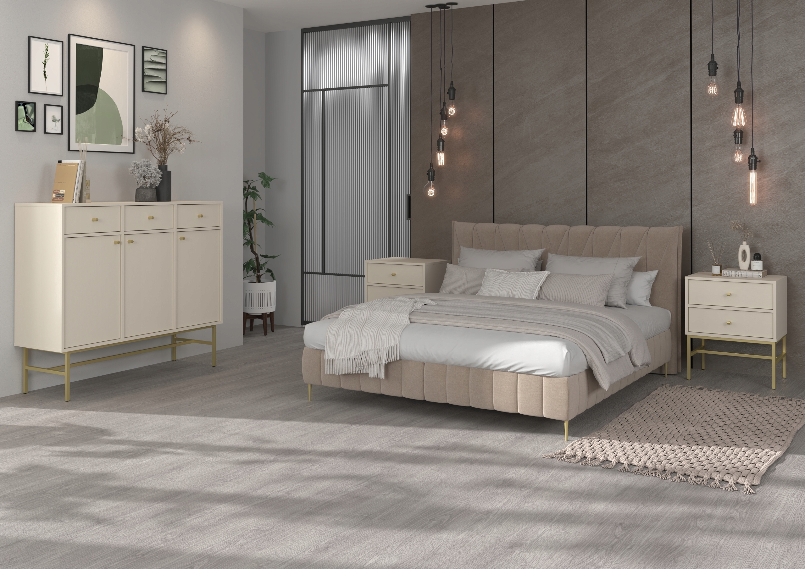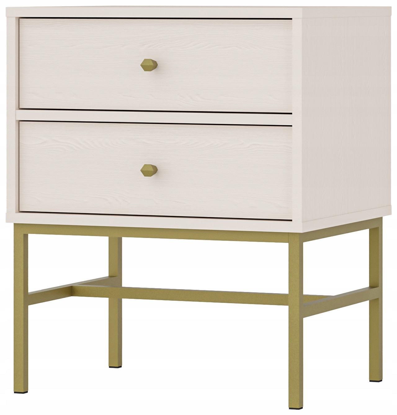 Szafka nocna AVILA w eleganckim beżowym kolorze to stylowy dodatek, który wnosi ciepło i harmonię do każdej sypialni. Wyposażona w dwie pojemne szuflady, jest idealnym miejscem na przechowywanie niezbędnych rzeczy, które chcesz mieć pod ręką przed snem. Złote, metalowe nóżki i uchwyty dodają całości luksusowego wykończenia, sprawiając, że ten stolik nocny prezentuje się wyjątkowo elegancko i nowocześnie.