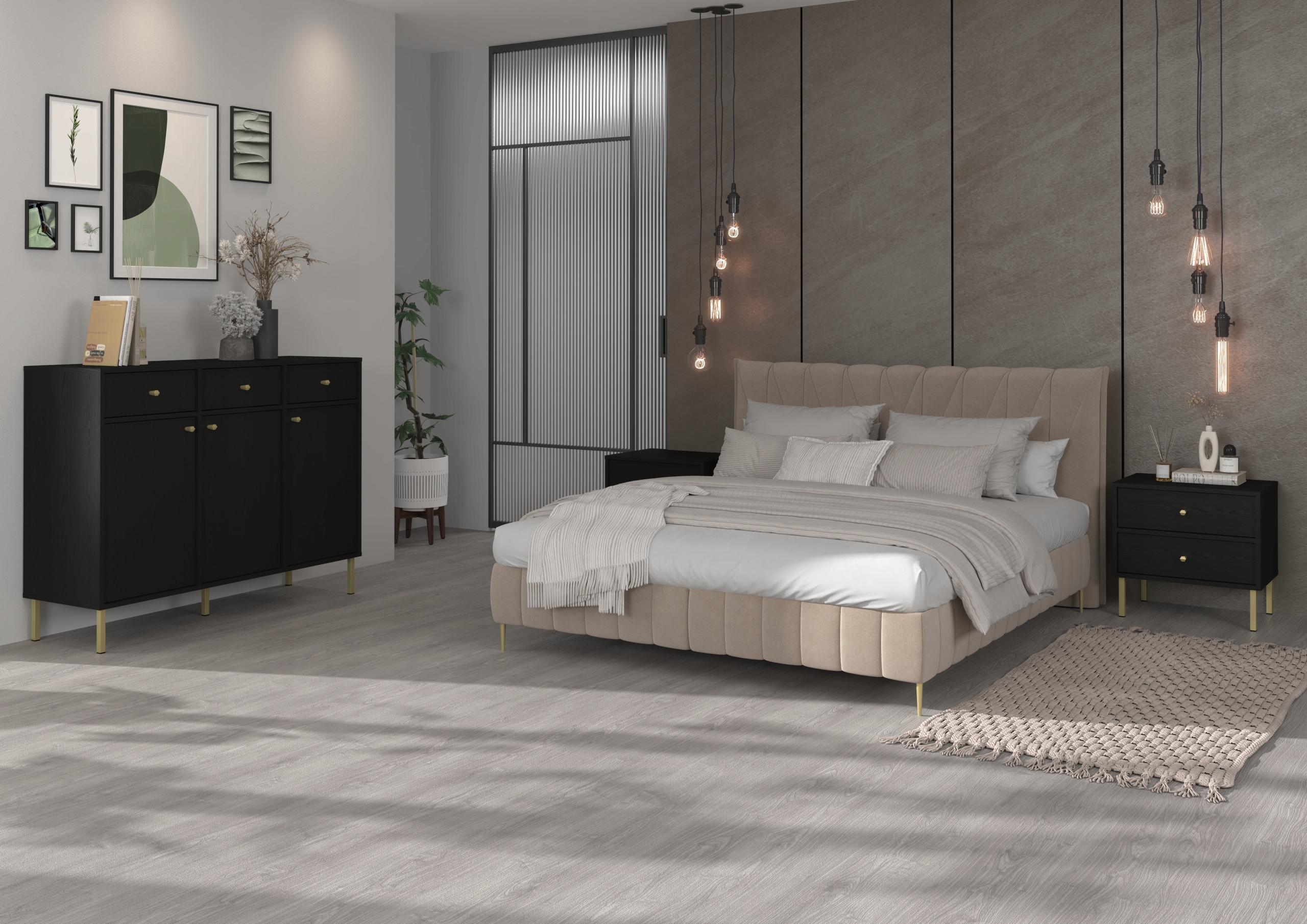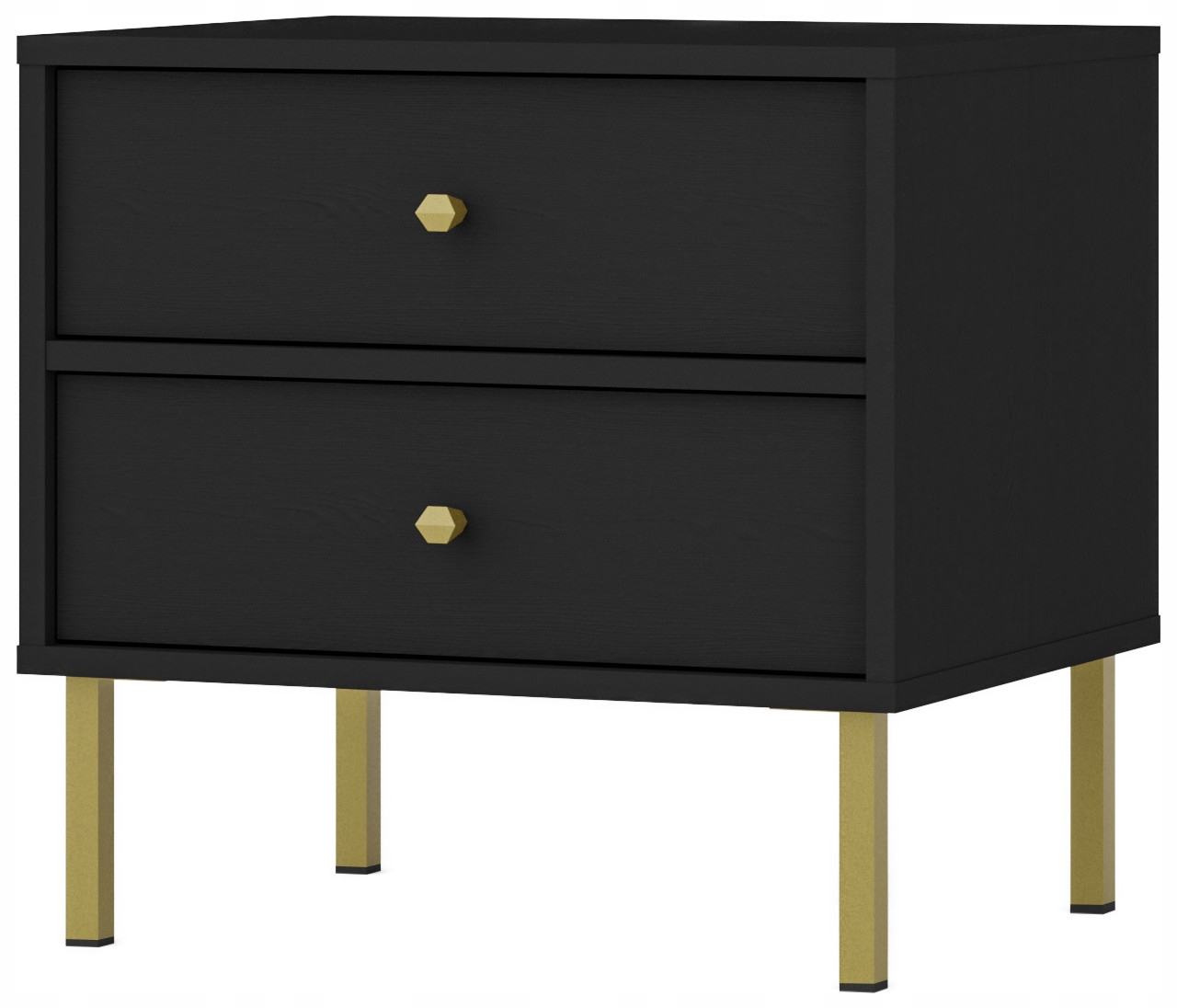 Utrzymany w głębokim kolorze czarnego grafitu, ten stolik nocny prezentuje się wyjątkowo stylowo. Złote metalowe nóżki i uchwyty dodają mu nowoczesnego charakteru, tworząc piękny kontrast z ciemnym korpusem. Prosta konstrukcja podkreśla minimalistyczny styl, a obrzeża zabezpieczone ABS zapewniają trwałość i odporność na codzienne użytkowanie. Kolekcja AVILA to także możliwość personalizacji – wybierz spośród różnych wariantów nóżek i kolorów, aby stworzyć idealny wystrój swojej sypialni.