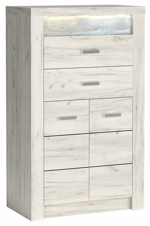 Szafka nocna BOHO to elegancki i funkcjonalny dodatek do każdej sypialni. Wyposażona w klapę otwieraną do dołu, oferuje wygodną przestrzeń do przechowywania przedmiotów, które chcesz mieć pod ręką przed snem, jak książki czy telefon. Jej blat z imitacji marmuru dodaje luksusowego charakteru, a kolor dąb riviera wprowadza ciepły, naturalny akcent, który doskonale wpisuje się w każdą aranżację wnętrza.