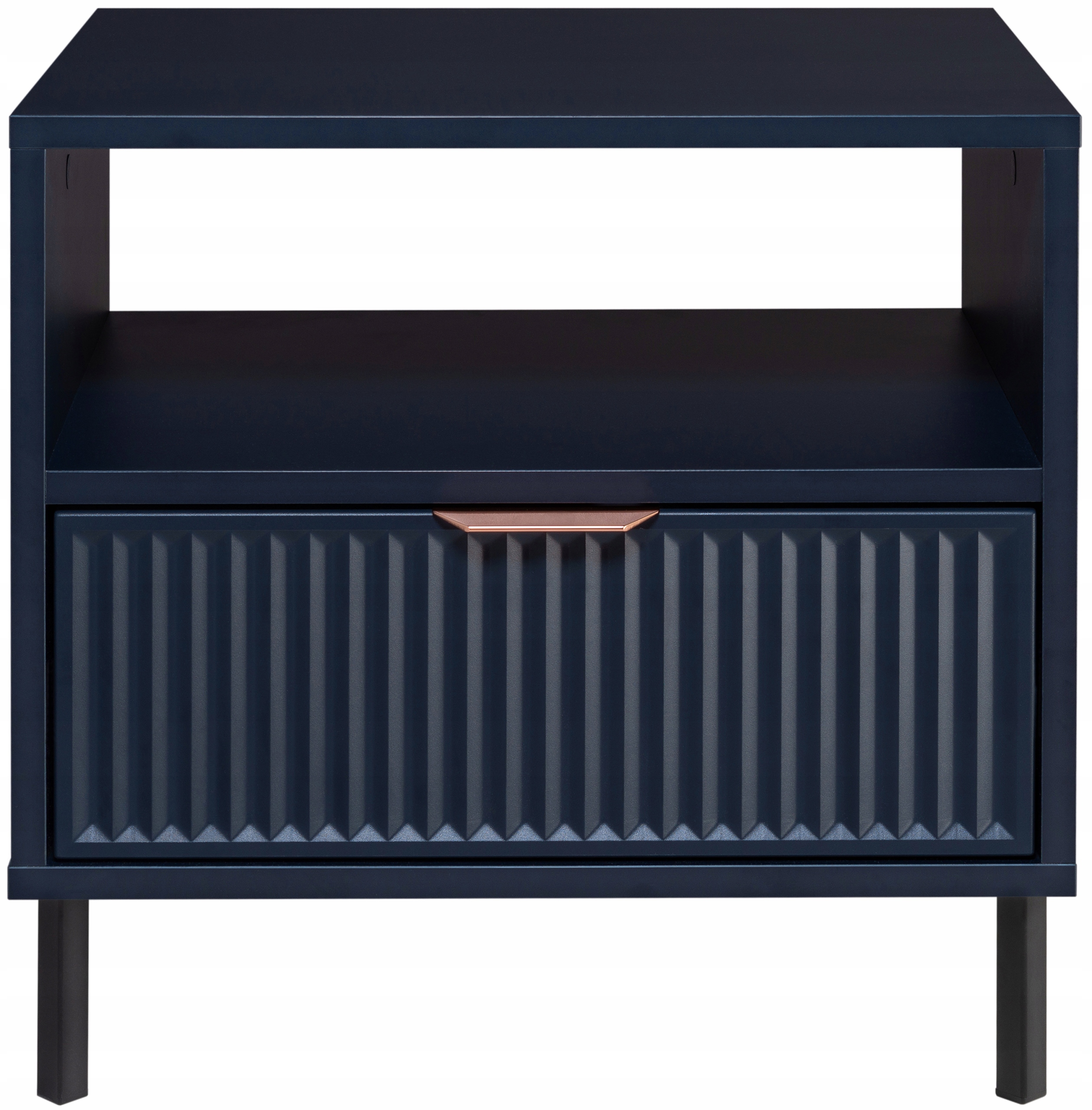 Dzięki funkcji cichego domyku, szuflada zamyka się płynnie i bezszelestnie, co zwiększa komfort użytkowania. Wykończenie w kolorze Indigo wprowadza subtelność i harmonię do każdej sypialni.