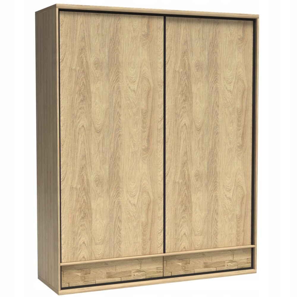 Duża i pojemna szafa z kolekcji MILAN to idealne rozwiązanie do garderoby, salonu lub sypialni. Jej nowoczesny, industrialny styl w połączeniu z ciepłym odcieniem Natural Hikora i kontrastującymi czarnymi wstawkami tworzy elegancką i funkcjonalną przestrzeń. Szafa wyposażona jest w ukryte szuflady z systemem PUSH TO OPEN oraz ciche domykanie drzwi, co zapewnia komfort użytkowania. Solidne obrzeże ABS gwarantuje trwałość, a możliwość dodatkowych półek i oświetlenia w opcji pozwala dostosować ją do indywidualnych potrzeb. To doskonały wybór dla osób ceniących estetykę i funkcjonalność w jednym.