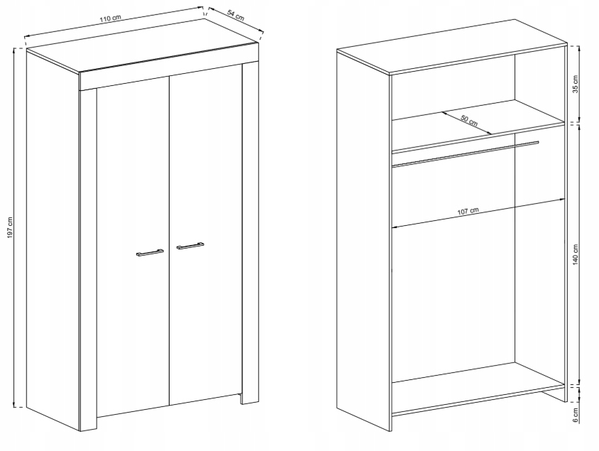 Mebel został wykonany z wysokiej jakości płyty laminowanej o grubości 16 mm, odpornej na zarysowania i codzienne użytkowanie. Korpus zabezpieczono obrzeżem ABS, co znacząco zwiększa jego trwałość. Fronty komody uzupełniają smukłe uchwyty w kolorze srebrnym, wykonane z wysokogatunkowego tworzywa – ich subtelna forma podkreśla nowoczesny charakter kolekcji.