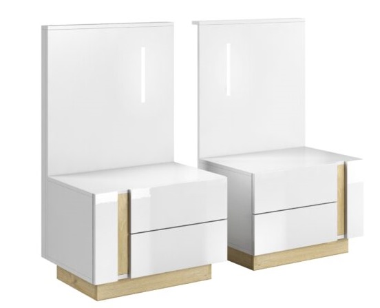 Front szafy wykończony jest w nowoczesnym białym połysku, z kontrastującymi akcentami w kolorze dębu grandson, które wprowadzają ciepły i elegancki akcent. Dodatkowym atutem jest lustro na froncie, które optycznie powiększa przestrzeń, nadając jej elegancji i funkcjonalności. Szafa wykonana jest z wysokiej jakości płyty laminowanej, a obrzeża ABS dodatkowo chronią krawędzie, zwiększając trwałość mebla.