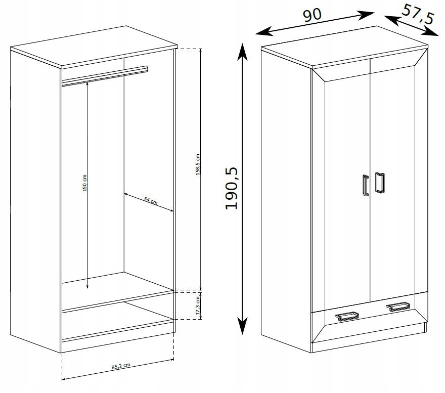 Funkcjonalność: Szafa oferuje dużo miejsca do przechowywania dzięki praktycznemu wieszakowi oraz dodatkowym półkom i szufladzie, co czyni ją niezwykle funkcjonalnym meblem.