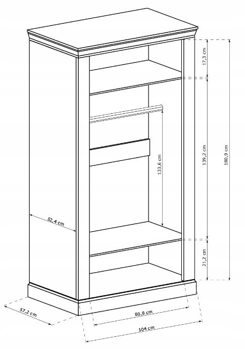 Dzięki funkcji cichego domyku, korzystanie z szafy jest nie tylko komfortowe, ale również estetyczne. Wyposażona w metalowe uchwyty, oferuje doskonałą funkcjonalność, a solidne półki oraz wieszak zapewniają wygodne przechowywanie ubrań. Szafa CANITA to idealne rozwiązanie dla tych, którzy cenią sobie styl oraz praktyczność w swoim domu.