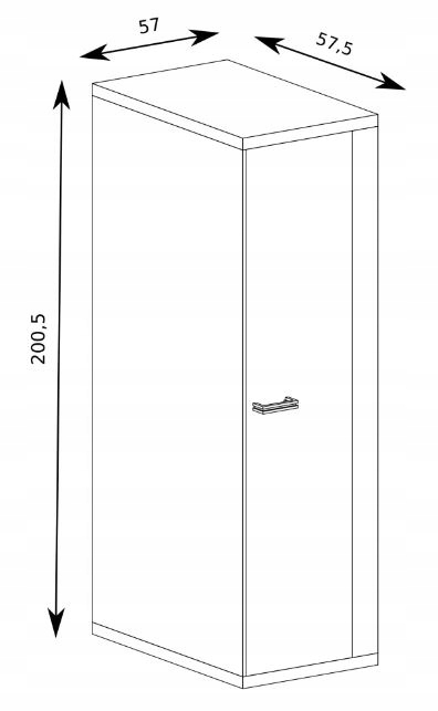 Przemyślana konstrukcja szafy, wyposażona w półkę oraz wieszak, zapewnia komfortowe przechowywanie odzieży i akcesoriów, jednocześnie oszczędzając cenną przestrzeń. Metalowy uchwyt dodaje nowoczesnego charakteru, a dbałość o detale sprawia, że mebel idealnie wpasuje się w różnorodne aranżacje.