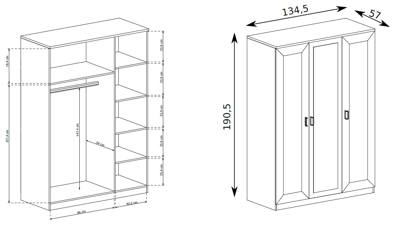 Styl szafy utrzymano w klasycznej formie, dzięki czemu mebel prezentuje się solidnie i elegancko niezależnie od ustawienia w pomieszczeniu. Szafa BRISTOL to nie tylko praktyczne miejsce do przechowywania, ale również stylowy element aranżacji, który doskonale wpisze się zarówno w klasyczne, jak i nowoczesne wnętrza.