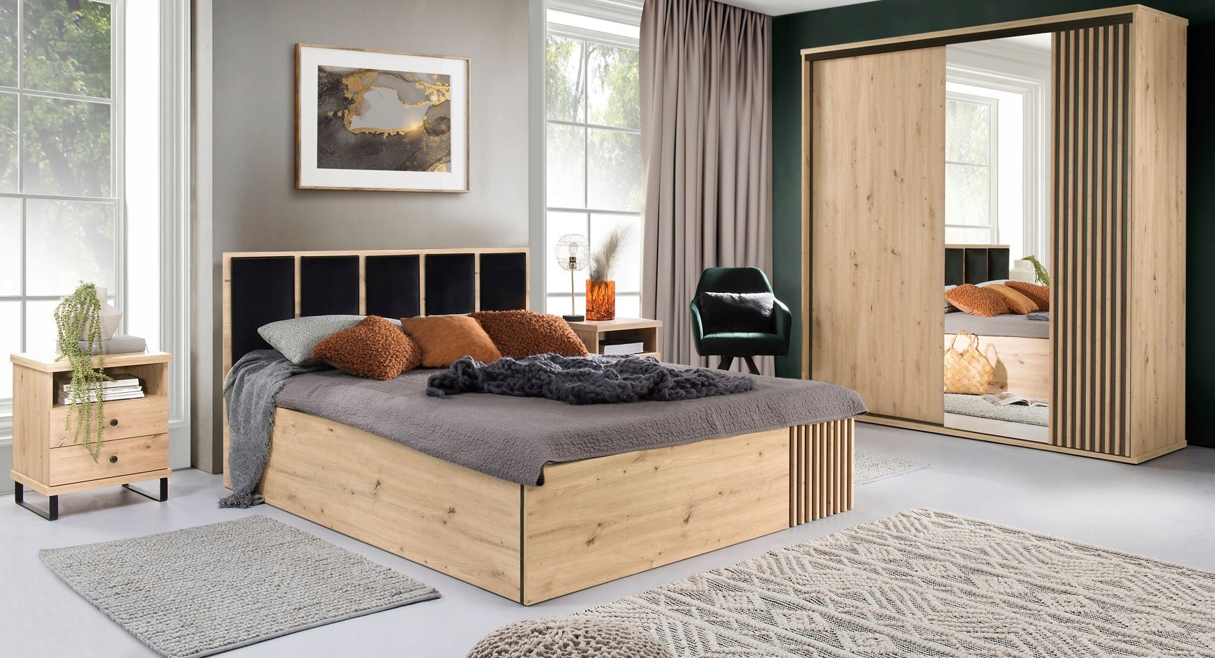 Szafa CAMPA to doskonałe połączenie nowoczesnego designu i funkcjonalności, idealna do sypialni lub przedpokoju. Jej elegancki kolor dąb artisan oraz lamelowe fronty wprowadzają ciepło i przytulność, tworząc harmonijną atmosferę w każdym wnętrzu.