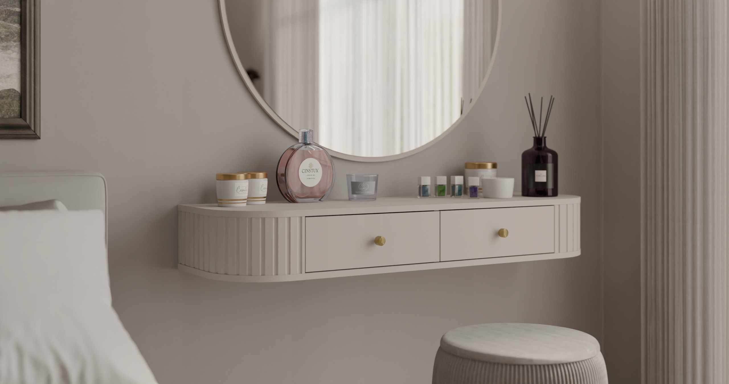 Toaletka OVALIO 120 cm w kolorze Beż Piaskowy z dwiema szufladami