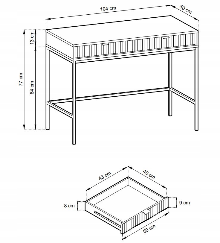 Metalowe, złote nóżki nadają meblowi lekkości, a jednocześnie ułatwiają sprzątanie, również z pomocą odkurzaczy automatycznych. Solidna konstrukcja toaletki oraz jej nowoczesny wygląd sprawiają, że będzie ozdobą nie tylko sypialni, ale także doskonale sprawdzi się w gabinecie czy salonie, wprowadzając do wnętrza elegancki akcent.
